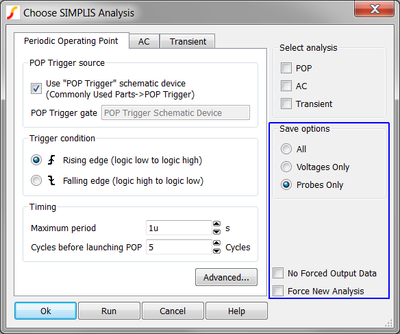 This tells SIMPLIS to ignore any state information that it may have stored and which could be used to speed up the run. For example, any stored snapshots (see SIMPLIS Transient Analysis) will not be used if this is selected.