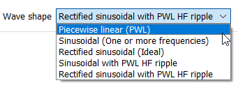 What if your waveform does not neatly fit into any of the above categories? In that case, use Sinusoidal (One or more frequencies) as the fallback setting, as any waveform can be represented as a series of sinusoidal harmonics. You could have used that setting for example for the Buck converter in the previous chapter, instead of the PWL setting, but the core losses calculated would have been considerably less accurate.