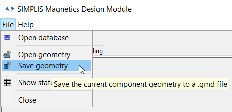 You can save a SIMPLIS Geometry Design File to disk, to an actual file with extension .gmd. To do this,
