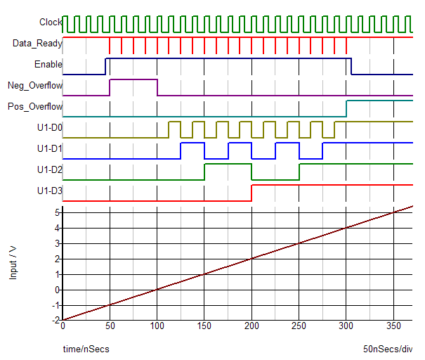 This inertial delay behavior describes the Delay parameter for all the Advanced Digital Logic Gates as well as the Out Delay of the Adder, Subtracter, Multiplier, Comparator and Latches and each of the delay parameters of the Analog-to-Digital Converters, Counters and Flip Flops.