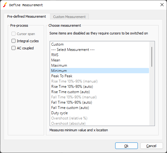 Measurement dialog, see Chapter 9 of the SIMetrix User Manual.