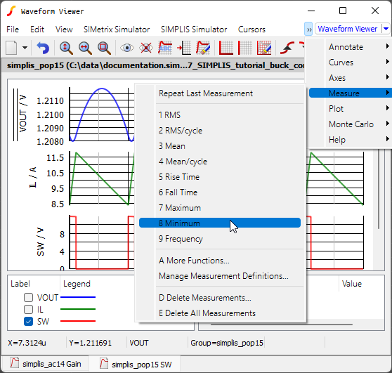 - SIMetrix/SIMPLIS has a powerful set of built-in measurements which can be applied to