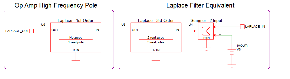 The test circuit used to generate the waveform examples in the next section can be downloaded here: simplis_078_1st_order_laplace_lpf_example.sxsch.