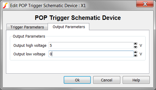To edit the output Parameters, click on the Other Parameters tab. The parameters simply set the output levels for the POP Trigger Schematic Device. Changing these parameters will not help you circuit converge in a POP analysis, nor will changing these parameters affect the POP errors.