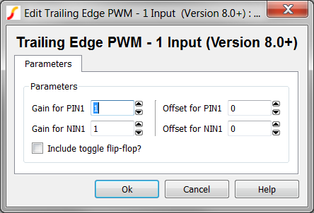 Include toggle flip-flop? Adds a toggle flip-flop to the PWM. See the Examples.