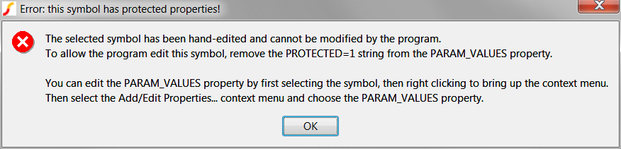 Note: When you click on the device after adding the PROTECTED=1 key-value pair, the following message box appears to warn you that this is a hand-edited model.