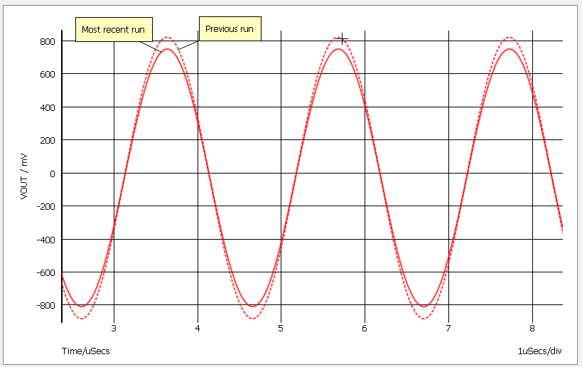 Fixed probes on the schematic change colour to reflect the colour of the graph curves they create. So if a red curve is created for a particular probe, the text of that probe on the schematic will change to red. This eases associating probes with plotted curves.