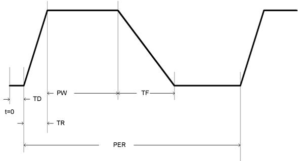 | FALL | Fall time i.e time to change from V1 to V2 | PERIOD/1000 | No |