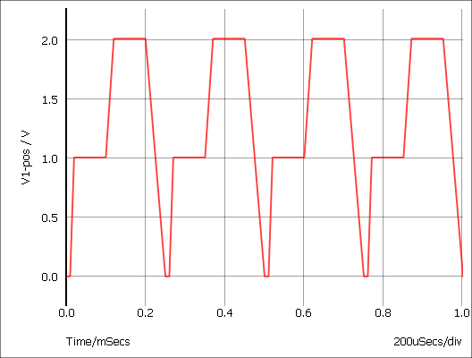 PWLS REPEAT FOREVER 0 0 10u 0 20u 1 100u 1 120u 2 200u 2 250u 0 ENDREPEATProduces a repeated signal as shown below: