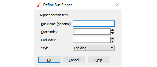 If you wish to add connections to or delete connections from a bus ripper, select the ripper device and press F7 or popup menu Edit Part.... The same dialog as above will be displayed. Adjust the start and end indexes appropriately then close the box.